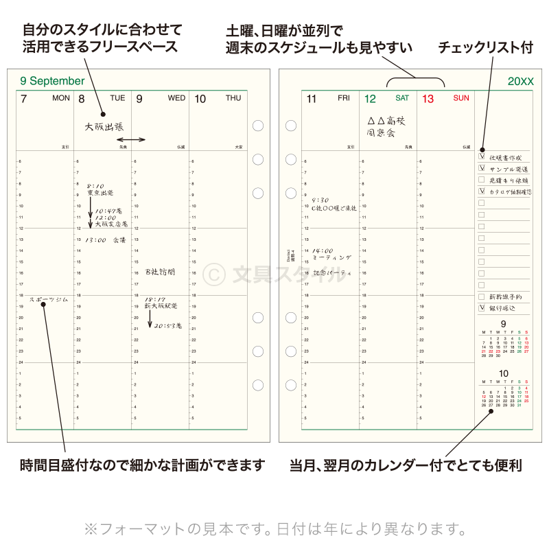 24時間対応の目盛付なので時間ごとのスケジュール管理がしやすくなっています。